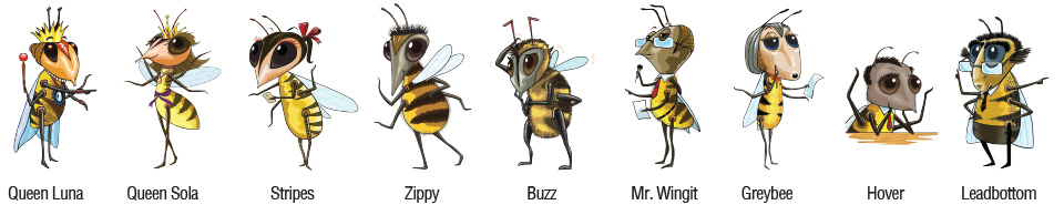 Ana karakterler – Buzz, Stripes, Hover, Greybee, Kraliçe Luna, Kraliçe Sola, Mr. Wingit, Zippy ve daha birkaçı – herhangi bir kuruluştaki tipik çalışanları, sizin günlük hayattan tanıdığınız insanları temsil ediyor. Belki hikâyede kendinizi bile bulabilirsiniz.